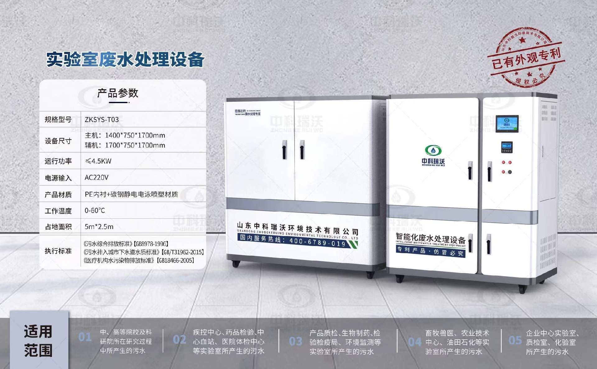 PCR實驗室污水處理設備生產廠家——山東中科瑞沃環境技術有限公司,是一家集污水處理技術研發、設備生產制造、工程安裝調試于一體的高新技術企業,研發生產PCR實驗室污水處理設備多年,中科瑞沃ZKRW系列PCR實驗室污水處理設備資質齊全、品質可靠、出水達標、價格優惠。如果您想了解PCR實驗室污水處理技術的更多信息,歡迎隨時聯系我們!